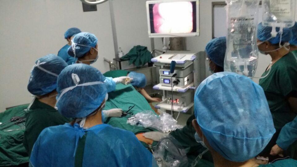 腹腔镜手术即利用腹腔镜及其相关器械进行的手术,它把现代最先进的科学技术与现代医学结合起来,是传统的手术技术与现代电子信息技术、光导工艺技术以及能量传导技术结合的产物。优点是:1、多角度“视察”,效果直观。2、恢复快。3、住院时间短。4、腹部美容效果好。5、盆腔粘连少。腹腔镜技术在妇科临床中有广阔前景,正逐步成为许多妇科手术治疗的新模式。腹腔镜手术的开展标志着我院微创手术迈向了新的开端。我院引进美国史赛克全套腔镜系统及手术操作器械,图形清晰,设备高端。可开展以下手术: 1.异位妊娠的手术治疗。2.卵巢肿瘤的剥除术、附件切除术。3.输卵管绝育术、子宫穿孔修补术、节育环外游取环术。4.不孕症探查术、输卵管造口术、盆腔粘连分解术。5.子宫肌瘤的手术治疗:(1)单纯子宫肌瘤的切除术;(2)子宫全切术;(3)子宫次全切术;(4)筋膜内子宫切除术;(5)腹腔镜辅助阴式子宫切除术。