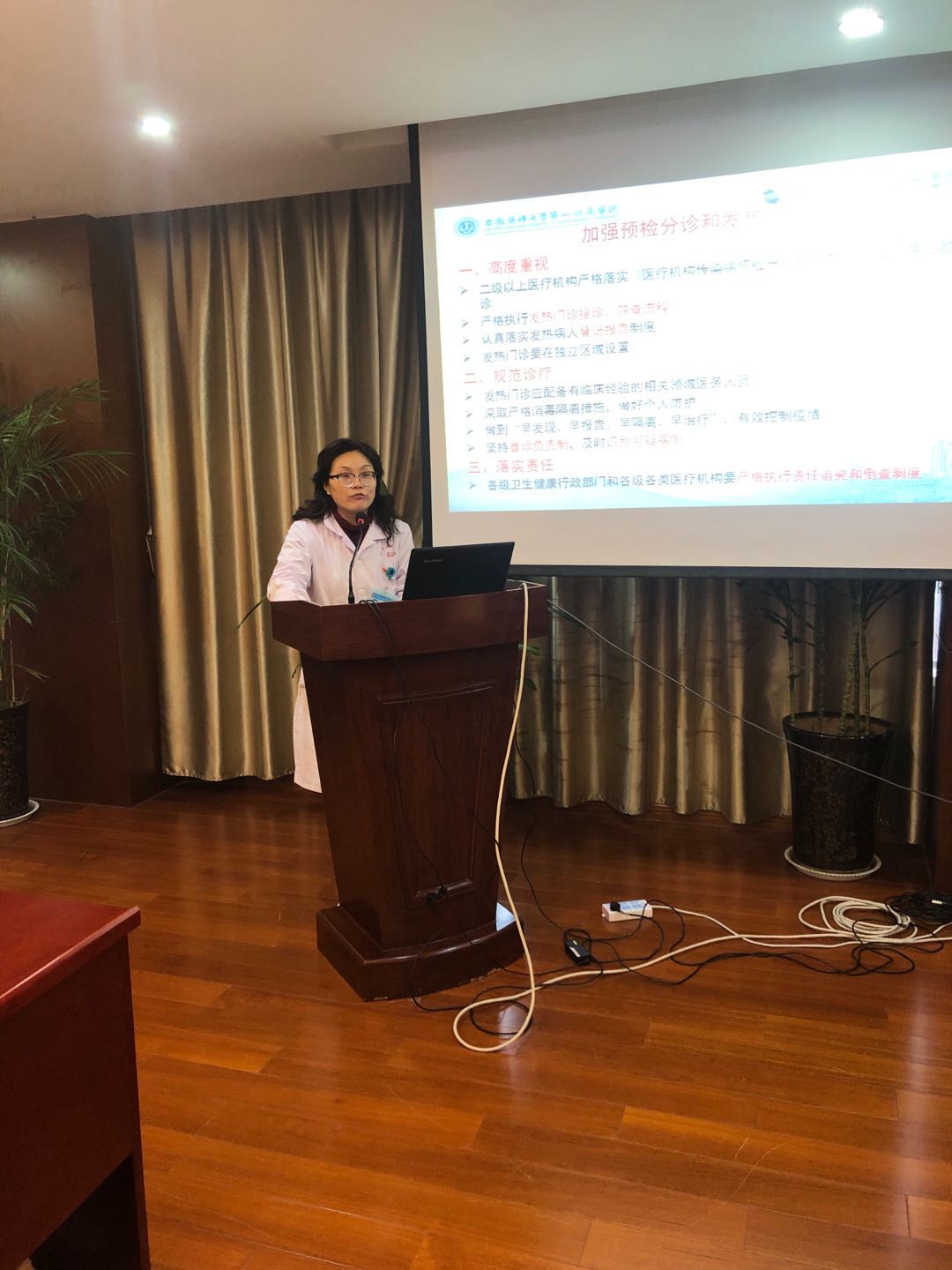 为了做好新型冠状病毒感染的肺炎防控工作,2020年1月24日(年三十)下午3点,金安区妇幼保健院组织全体非当班医护人员,在14楼大会议室举行新型冠状病毒感染性肺炎感控防护措施培训,全院共300余人参加了培训,熊敏副院长主持了会议。
