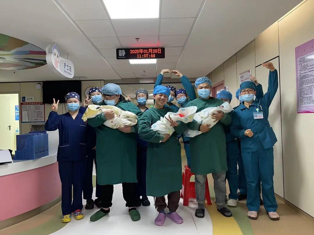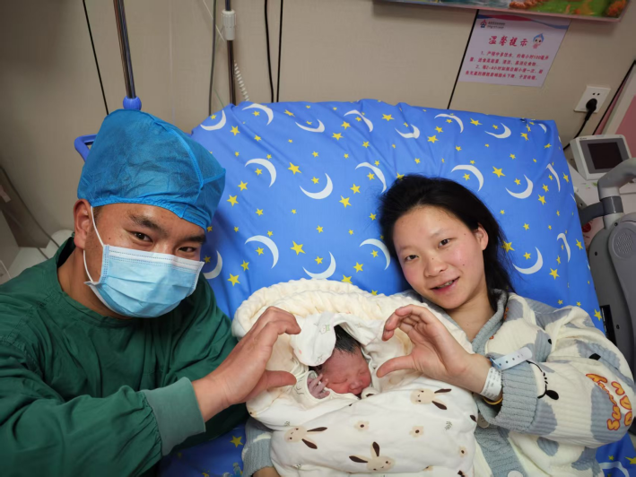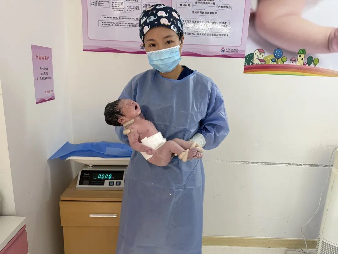 除夕的烟火气尚未散尽,产房监护仪的滴答声已悄然加速。龙女士额角沁出细密的汗珠,丈夫紧握的掌心传递着无声的力量。"吸气—用力!"助产士刘倩倩沉稳地指导龙女士正确发力,减小痛苦,大年初一1时55分,产房迎来了新年的第一位“蛇宝宝”,五斤八两的小天使翩然而至,护士将襁褓轻放母亲胸口,母亲的脸上露出疲惫而欣慰的笑容,新生命的到来,为龙女士一家带来了无尽的喜悦,也为医院增添了新年的喜庆与希望。
